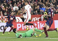 В этом году "Севилья" пока очень редко радует своих болельщиков. В предыдущих пяти матчах Примеры нервионцы добыли всего одну победу, окончательно выключились из "золотой" гонки и рискуют такими темпами потерять место в лигочемпионской четвёрке. Вылет из Кубка Испании после крайне неприятного поражения на "Камп Ноу" также не добавил севильцам приятных эмоций. Между тем, уже на следующей неделе команду Пабло Мачина ждёт первый поединок с "Лацио" в рамках 1/16 финала Лиги Европы. А перед выездом в Рим нервионцам предстояло в родных стенах помериться силами с "Эйбаром". "Оружейники" решают в чемпионате свои задачи. Дружина Хосе Луиса Мендилибара сохраняет реальные шансы на попадание в зону еврокубков. От "Бетиса" перед 23-м туром "Эйбар" отделяли всего три балла. Совсем недавно баски преодолели полосу неудач и в предыдущих трёх матчах Ла Лиги набрали семь очков, наколотив в ворота "Эспаньола", "Леганеса" и "Жироны" в сумме восемь мячей. Однако "Севилья" представлялась куда более серьёзным соперником для "оружейников". В первом круге нервионцы на "Ипуруа" добились убедительной виктории со счётом 3:1 и в родных стенах тем более рассчитывали на положительный результат. Кроме того, после поражения в Виго "красно-белые" жаждали реабилитироваться перед своими болельщиками. Правда, лазарет у хозяев по-прежнему не пустовал. В поединке с "Эйбаром" хозяева не могли рассчитывать на Гильерме Арану, Жориса Ньянона, Габриэля Меркадо, Алейша Видаля, Максима Гоналона, Марко Рога и Нолито. Зато вернулись в строй Хесус Навас и Мунир Эль-Хаддади. "Оружейникам" не могли помочь Марко Дмитрович, Хорди Калавера и Педро Леон.