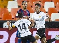 А вместо этого ответили быстрым голом, наказав «Леванте» за обострившуюся самоуверенность. Ничего толкового хозяева не придумали, помог стандарт. От правого углового флага классно навесил Ли Кан Ин, а Габриэл Паулиста пробил головой аккурат под штангу. Айтор Фернандес мяч задел, но не спас. Валенсийское дерби не успокоилось и на этом. Команды очень соскучились по футболу. Сначала «Валенсия» из-за травмы потеряла Мангаля: заменил его Дьяхаби, а уже через минуту хозяева пропустили. Как раз в центр штрафной площади пошла подача на Кампанью, тот в борьбе с защитником сумел мяч принять, развернуться и отдать на Мелеро, который точно пробил с восьми метров. Начали радоваться футболисты «Леванте», но вмешался VAR, углядевший игру рукой. Хосе Кампанья и правда задействовал кисть во время обработки мяча – гол отменили справедливо. Только после этого «Валенсия» и «Леванте» немного успокоились, накатываясь атаками в более спокойном темпе. Мяч всё также часто ходил от одних ворот до других, но ударную позицию вырваться не давали. Оборона заиграла внимательнее.