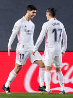 Мадридский «Реал» остановил «Сельту». Команда Эдуардо Коудета выдала 6-матчевую беспроигрышную серию всего лишь с одной ничьей, но вновь пала в гостях от руки гранда, прервав попутно и свою 10-матчевую голевую серию. Ход матчу могли задать Аспас и Нолито, но в этот раз данная грозная парочка момент не реализовала, за что виговцы моментально поплатились. Марко Асенсио прошел на левый край чужой штрафной и мягко навесил на дальний угол вратарской, где Васкес головой спокойно пробил в пустой угол ворот. В середине тайма гости могли претендовать на пенальти, но рефери не решился его поставить после того, как мяч попал в руку Менди. Концовка первой половины также осталась за «сливочными», но Асенсио не вышел под острый пас от Бензема, а Карвахаль в другом эпизоде влет пробил неточно. Второй тайм вышел как под копирку. Сначала Аспас получил травму и ушел на замену, а затем хозяева забили второй. Перехват мяча, Васкес убежал вперед и выложил мяч с правого угла штрафной налево. Марко Асенсио сделал паузу и пробил верхом над падающим Рубеном. Дальше можно было не играть, но вдобавок ко всем бедам «Сельты» повреждение получил и Нолито, а «Реал» благородно громить соперника не стал.