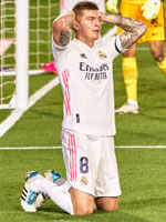 Мадридский «Реал» знал, что при победе над «Севильей» возглавит чемпионскую гонку, но андалусийцы приехали давать бой. И дали! Тотальное доминирование гостей привело... к голу Бензема, которого снабдил пасом Одриосола, вот только Альваро был в офсайд. А гости забили уже по правилам! Хитрый розыгрыш штрафного завершился подачей справа от Наваса в штрафную. Ракитич сбросил головой на Фернандо, а тот с линии вратарской после ложного замаха прошил Куртуа. Каземиро и Бензема могли сравнять до перерыва, но не пробили Буну. Опасные моменты у обоих ворот продолжились и после перерыва, но «сливочные» создавали больше, вот только забить не могли. Помог вышедший на замену Асенсио, который через минуту с правого края штрафной после паса Крооса отправил снаряд с левой впритирку к ближней штанге. Самый спорный момент случился на 74-й минуте. Хозяева отбились после углового, убежали в контратаку и Бензема заработал пенальти. Вот только VAR показал, что перед этим была игра рукой Милитао в своей штрафной, поэтому пенальти перенесли к воротам Куртуа. Ракитич хладнокровно исполнил. «Реал» поддавил, но отыграться не мог. Казалось, что андалусийцы увезут сенсационную победу и выкинут команду Зидана из чемпионской гонки, но на 4-й компенсированной минуте Кроос после неудачного выноса Фернандо подобрал мяч и пробил по центру метров с 22. Снаряд угодил в пятку Азару и влетел мимо застывшего на противоходе Буну в створ.