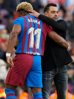 «Барселона» выдала феерию! Пожалуй, никто не ставил на такой счет в матче против «Атлетико», хоть все и сходились во мнении, что игра будет на три исхода. Гости открыли счет в первой же толковой атаке. Суарес увел за собой защитников и справа прострелил в штрафную, где не оказалось Пике. Араухо подстраховать не успел, поэтому Карраско с правой прошил тер Стегена. Симеоне не успел порадоваться, как хозяева сравняли. Алвес обыгрался с Траоре и перевел с правого края штрафной на левый, откуда удар влет с левой удался Альбе. Сфера легла точно в дальнюю «девятку» от штанги. Траоре продолжал финтить на своем правом крае атаки и подавать или простреливать. В середине тайма удался навес на линию вратарской, где забыли и Торреса, и Гави. Бил головой последний, да еще при помощи рикошета от защитника – мяч юркнул мимо Облака. Феликс мог вернуть мадридцев в игру, но с левого угла вратарской пробил неакцентированно и от газона – в руки вратарю. В концовке тайма «матрасники» пропустили и третий. Алвес подал со штрафного, а Пике отправил мяч головой в перекладину. Торрес пытался добить из вратарской, но не попал по мячу, смутив вратаря. Добивал уже Араухо, который нашел щель между Облаком и ближней штангой. Сразу после перерыва гол-красавец забил Алвес. Гави прострелил слева через всю штрафную, два каталонца мяч пропустили, а Даниэль метров с 14 расстрелял ворота. Казалось, что «Атлетико» обречен, но мадридцы собрались, поджали сине-гранатовых и забили второй: Ферран Торрес потерялся в своей вратарской, поэтому не было офсайда у Суареса, которому головой мяч сбросил Хименес. Луис бывших одноклубников не простил. Вслед за этим хозяева остались в меньшинстве, потому что Алвес вошел шипами под колено Карраско. Арбитр фола не увидел, но VAR помог разобраться. Вот только удаление гостям не помогло. Их словно выключили, а «Барса» пятый забивать не полетела.