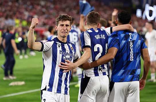 В финале Кубка Короля “Реал Сосьедад” взял верх над “Атлетико” в серии послематчевых пенальти – 2:2, 4:3 пен. В сезоне 1986/87 “Сосьедад” уже обыгрывал “Атлетико” в кубковом финале в серии 11-метровых, и спустя почти 40 лет история повторилась в Севилье. Баски обескуражили фаворита, открыв счёт в первой же атаке после розыгрыша мяча с центра поля. Андер Барренечеа стал автором самого быстрого гола в истории финалов Кубка Испании! Крен “матрасников” на левый фланг атаки всецело оправдал себя, поскольку Адемола Лукман вскорости восстановил равновесие на табло “Ла-Картухи”. Сансебастьянцы вновь добавили и забили в раздевалку. Муссо неуверенно сыграл на выходе, сбив Гедеша, что привело к назначению пенальти в ворота “Атлетико”. После удара Микеля Оярсабаля с “точки” аргентинец не выручил “красно-белых”… Вторая половина основного времени прошла под знаком почти непрерывных атак команды Диего Симеоне. В конце концов, Хулиан Альварес сравнял счёт после прохода Льоренте и передачи Альмады! Мадридцы вполне могли дожать поплывших басков до финального свистка, но ни Баэна, ни Сёрлот, ни Кардосо не приговорили сансебастьянцев. В овертайме верный шанс забить не использовал Оскарссон, тогда как Альварес сотряс перекладину ворот Уная Марреро. Последний стал героем серии пенальти, принеся “Сосьедаду” трофей сейвами после ударов Сёрлота и Альвареса. Благодаря второму кубковому триумфу в XXI веке “Реал Сосьедад” обеспечил себе место в общем этапе Лиги Европы следующего сезона. “Атлетико” после неудачи в первом для себя финале Кубка Испании за 13 лет теперь сконцентрируется на Лиге чемпионов, где мадридцы в полуфинале постараются пройти “Арсенал”. ![]() Фото - Getty Images Предыстория. В финальном матче 124-го розыгрыша Кубка Испании в Севилье лицом к лицу встретятся “Атлетико” и “Реал Сосьедад”. На стадионе “Ла-Картуха” пройдёт титульная игра имени Антуана Гризманна: живая легенда “матрасников” начинал свой путь именно в составе команды из Сан-Себастьяна! Занятно, что свой первый в истории Кубок Испании футболисты “Сосьедада” выиграли без малого 40 лет назад именно в финале против “Атлетико” – 2:2, 4:2 пен. Отчётный поединок станет уже третьим противостоянием “рохибланкос” и “чури-урдин” в текущем сезоне: в первом матче Пеллегрино Матараццо у руля басков команды обменялись голами после перерыва (1:1), а в марте “Атлетико” с большим трудом вырвал три очка в столице – 3:2. Команда Диего Симеоне потеряла мотивацию в Ла Лиге, где мадридцы не упустят путёвку в Лигу чемпионов, зато в кубковых турнирах “матрасники” готовы биться до конца. И на пути к финалу Кубка Короля, и по дороге к полуфиналу ЛЧ “Атлетико” выбил “Барселону”! Посреди недели “красно-белые” не без доли везения прошли “Барсу” в главном еврокубке, минимально уступив дома (1:2) после 2:0 на “Камп Ноу”. “Реал Сосьедад” в Примере ещё не гарантировал себе финиш в еврозоне. При этом позитивная динамика выступлений команды Матараццо должна внушать оптимизм болельщикам номинальных гостей. В ту же Лигу Европы можно квалифицироваться через кубковый триумф! После паузы на матчи сборных “бело-голубые” всухую победили “Леванте” (2:0) и обидно упустили три очка в дерби с “Алавесом” (3:3). В решающей игре Кубка Испании мадридцам не помогут Хименес и Ганцко. Помимо Захаряна, вылетевшег