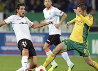 А потом пошли голевые атаки в ход. Сначала с правого фланга последовал с навес к вратарской штрафной «Кубани», из пределов которой Кошта с убойной позиции выстрелил, но получилось прямо в Беленова. Далее уже Парехо издали пробил, но получилось по позиции вратаря, который, кстати, как-то неуверенно повёл себя в этой опасной ситуации. После этого «Валенсия» захватила преимущество. Доминировали испанцы по полной программе. Безвылазно сидели на своей половине поля подопечные Мунтяну. Борьба становилась всё жёстче, в ход уже пошли жёлтые карточки, одна за другой. Козлов получил наказание за фол на Бернате, а Парехо прямо ногой на Фидлере сыграл, за что также не остался без «жёлтого света» в свой адрес. Хорватский рефери особо не церемонился с командами и правильно делал. Иначе можно было и упустить саму игру, стали бы лупить друг друга так, что травм наполучали бы. Самый активный в составе хозяев Сиссе мог в концовке первого тайма головой поразить створ ворот «Валенсии». Мельгарехо на него с левого фланга оформил навес, после чего француз пробил, но… мимо. Совсем чуть-чуть не хватило. А ведь так нужен был этот гол «Кубани». Нули на табло. И полная капитуляция футболистов принимающей стороны под конец тайма. Приезжие смотрелись лучше, сильнее, заряженнее. Возможно, Мунтяну что-то мог поменять в перерыве…