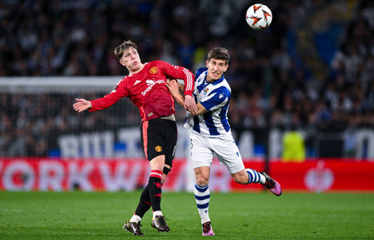 Пожалуй, от первого матча этих команд мы были вправе ожидать большего. У соперников не лучшим образом складываются дела в чемпионатах, поэтому было бы логично сделать ставку на еврокубки. «Реал Сосьедад» не включал высокие скорости, рассчитывая подловить гостей на контратаках, но и сами манкунианцы далеко не стремились постоянно играть первым номером и бросать большие силы в атаку. Первый тайм опасными моментами не запомнился, тогда как после перерыва активность англичан привело к голу, когда Гарначо сначала прикормил защитников своими неточными ударами, а потом в неожиданный момент не стал бить сам, а отдал пас на Зиркзее, который и поразил цель. Хозяевам помог стандарт, а никак не замены Альгуасиля, с которыми он явно опоздал. Мяч после подачи с корнера от Кубо угодил в руку Фернандешу, а пенальти четко исполнил Оярсабаль. В дальнейшем забивать уже могли исключительно сан-себастьянцы, тогда как подопечные Аморима просели по «физике» и больше заботились о том, как сохранить добытый результат. Короткая скамейка не давала португальцу разгуляться, а вот вышедший у басков Беккер выдал две потенциально голевые передачи, но Оскарссон не смог реализовать пару очень хороших шансов, что автоматически сделало «МЮ» фаворитом ответного поединка. Правда, если ситуация с кадрами у манчестерцев резко не улучшится, то не факт, что они дома выступят намного ярче, чем сегодня. ![]() Фото - Getty Images. Предыстория. Одна из интереснейших пар в 1/8 финала Лиги Европы – это «Реал Сосьедад» против «Манчестер Юнайтед». Еще в прошлом сезоне оба коллектива играли в Лиге чемпионов, и если манчестерцы из группы не вышли, то баски вполне себе прорвались в плей-офф, где благополучно вылетели от «ПСЖ», причем ровно на этой же стадии. Вот только «МЮ» сейчас в такой форме, что сам может вылететь чуть ли не от кого угодно, а бывшие заслуги к делу не пришьешь. Воспринимавшийся сначала мессией португальский специалист Рубен Аморим не то, что не сделал лучше, чем было при тен Хаге, а даже уменьшил темп набора баллов в рамках АПЛ. Но все мы знаем, что еврокубки – это совсем другая история, и для манкунианцев победа в Лиге Европы остается единственным шансом попасть в Лигу чемпионов на следующий сезон. Ровно то же мы можем сказать и про «Реал Сосьедад», который еще сражается за Кубок Испании, но победа в нем принесет путевку только в Лигу Европы, куда сан-себастьянцы вполне могут отобраться и через Примеру. Теоретически, если Испания добудет себе право на 5 команд в следующем сезоне ЛЧ, то можно сделать ставку и на внутреннее первенство, но очень уж нестабильны баски в нынешнем розыгрыше. На всякий случай, напомним, что исторически «МанЮнайтед» играет против «Реала Сосьедад» довольно неплохо: в 6 поединках 3 победы при двух ничьих и лишь одном поражении, но это самое поражение было 2,5 года назад и как раз в рамках Лиги Европы. Если говорить о потерях, то тут тоже преимущество за сегодняшними хозяевами. Иманоль Альгуасиль не может рассчитывать лишь на Пачеко, Одриосолу и Захаряна, тогда как у Аморима в лазарете почти полноценный состав: голкиперы Байындыр и Хитон, защитники Эванс, Магуайр, Мартинес, Шоу, хавбек Майну, Маунт, Угарте, а также форвард Диалло. Ход матча. Поединок начался с эффектного финта от Онаны, который во вратарской убрал мяч под себя, обыграв на замахе прессингова