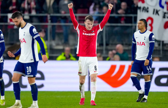 В первой игре 1/8 финала Лиги Европы АЗ дома сломил сопротивление "Тоттенхэма" - 1:0! На протяжении всего матча в Алкмааре представитель АПЛ демонстрировал невнятную игру в атаке. Задорная голландская молодёжь, напротив, летела вперёд с большим энтузиазмом. Если бывший нападающий "шпор" Пэрротт и Поку не огорчили Викарио, то после подачи Коопмейнерса с углового мяч в свои ворота отправил Бергвалль. Курьёзный автогол! Ещё до ухода в раздевалку "красно-белые" дважды могли развить успех. В первом случае Викарио не позволил Пэрротту реализовать выход 1x1, а впоследствии Коопмейнерс с подбора угодил в Бергвалля. Гости ответили разве что неточным дальним ударом Джонсона. После перерыва, несмотря на все старания Постекоглу, игра "Тоттенхэма" впереди не преобразилась. Временами было давление на ворота Овусу-Одуро, но не было точного последнего паса или удара... Были полумоменты на финише игры у "шпор", однако Одобер взмыл ввысь и пробил выше цели, а до того всё тот же Одобер выпалил по позиции голкипера АЗ. Алкмаарцы взяли реванш у "Тоттенхэма" за осеннюю неудачу, сделав заявку на проход дальше. Англичане, безусловно, остаются фаворитом пары, но лондонцам придётся приложить максимум усилий в ответной встрече для выхода в четвертьфинал. ![]() Фото - Getty Images. Предыстория. В первом матче 1/8 финала Лиги Европы в Алкмааре АЗ схлестнётся с "Тоттенхэмом". В октябре команды уже встречались на общем этапе ЛЕ, когда "шпоры" дома взяли верх над "сыроварами" - 1:0. АЗ претендует на третью голландскую путёвку в Лигу чемпионов, занимая промежуточное шестое место. Кроме того, алкмаарцы имеют все шансы на триумф в Кубке Нидерландов, в финале которого команда Маартена Мартенса будет соперничать с "Гоу Эхед Иглс". АЗ ударно провёл февраль, разразившись 7-матчевой беспроигрышной серией во всех турнирах. В стыковом раунде плей-офф Лиги Европы "красно-белые" разобрались с "Галатасараем" (4:1 дома, 2:2 на выезде), тогда как на прошлых выходных АЗ не совладал с "Херенвеном" - 1:3. "Тоттенхэм" штормит. Команде Анге Постекоглу будет архисложно финишировать даже в первой половине таблицы АПЛ, поскольку прямо сейчас "шпоры" расположились на 13-й строчке в девяти очках от десятой "Астон Виллы".... В то же время лондонцы остаются одним из главных фаворитов во втором по силе еврокубке. "Хотспур" напрямую вышел в 1/8 финала ЛЕ, став четвёртым на общем этапе. После двух успехов кряду в прошлый мидвик "Тоттенхэм" уступил "Манчестер Сити" - 0:1. Накануне игры группа атаки алкмаарцев обескровлена отсутствием Мейнанса, ван Боммела, Аддая и Мердинка. Также голландцам не поможет резервный голкипер Вестервелд. Лондонцы отправились на евровыезд без целой группы футболистов, включая Дрэгушина, Дэвиса, Кулусевски и автора гола в ворота "сыроваров" Ришарлисона. Ход матча. Мартенс ограничился одной заменой в стартовом составе АЗ через три дня на четвёртый после поражения от "Херенвена": капитан "красно-белых" Класи вышел в центре поля вместо серба Белича. Постекоглу выполнил две перестановки в основном сочетании "Тоттенхэма" после минимальной неудачи в игре с "Ман Сити". Спенс и Сон Хын Мин вышли с первых минут у лондонцев вместо Порро и Одобера. Впервые за долгое время в заявку англичан вошли Ромеро, ван де Вен и Соланке. Футболисты "Тоттенхэма" разыграли мяч с центра поля со стартового свистка словенского арбитра Ра