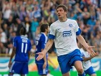 Очень неожиданный результат был зафиксирован в последнем матче субботы. Луцкая "Волынь" навестила своего бывшего тренера Виталия Кварцяного в Запорожье, где он сейчас тренирует "Металлург". Визит получился совсем недружеским, завершился разгромом хозяев и приблизил запорожцев к возвращению в Первую лигу. Кварцяный, кстати, себе не изменил, сделав первую рокировку в матче уже на 27-й минуте. Лазарович вышел вместо Писоцкого. После этого Жуниор мог открывать счет, но в "девятку" ударом из-за штрафной не попал. За это хозяева были наказаны. На 34-й и 35-й минуте лучане сообразили два гола за авторством Пилипчука и Бикфалви. В первом случае ошибся Парцвания, давший пробить головой Сергею после навеса Аржанова, а во втором голе виноват Шевченко, который не смог отразить выстрел с 28-30 метров. "Металлург", которой и до этого не блистал, два гола отыграть был просто не в состоянии. Замену-то в перерыве Кварцяный сделал, но подопечные Демьяненко ответили третьим голом. Очередная ошибка Тейку (из-под него забивал Бикфалви), и Аржанов уже замыкает прострел Изворану из центра штрафной. Игра была сделана и матч по сути доигрывался. Все замены использовал Демьяненко, выпустил побегать Воронкова Кварцяный, пара желтых карточек... И не более. 0:3 - отличная гостевая победа "Волыни", которая осела на 9-й строчке.