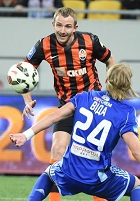 Ну а закрывал отчётный тур матч между донецким "Шахтёром" и киевским "Динамо". Матч за чемпионство, как заявил по его окончании наставник киевской команды Сергей Ребров. Встреча предсказуемо получилась очень напряжённой, но и элемента зрелищности она лишена не была. "Горняки" соорудили первую опасность на 15-й минуте, когда Дуглас Коста пробил в угол метров с 17-ти – опытный Шовковский не позволил себе ошибиться. "Динамо" через две минуты ответило моментом имени Кравца, который вырвался один на один с голкипером, но не смог попасть в дальний угол. На 22-й минуте подобную возможность упустил Луис Адриано, не переигравший Шовковского в ближнем бою. Первый тайм прошёл с небольшим преимуществом "Шахтёра", а на первой минуте второго великолепный момент упустили динамовцы: Ленс получил мяч в центре штрафной, откуда должен был забивать с закрытыми глазами, но в итоге с открытыми направил мяч над перекладиной. После этого игра надолго переместилась в центр поля, и взорвалась уже ближе к финальному свистку. Сначала на 88-й минуте Луис Адриано ударом с восьми метров не нашёл ничего лучше, чем расстрелять перекладину, затем на 89-й минуте Ярмоленко своим ударом потревожил перекладину. Как итог – закономерные в какой-то степени 0:0, которые делают "Динамо" ещё на шаг ближе к чемпионскому титулу.