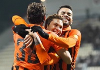 | "Шахтёр" и "Динамо" в очередном туре чемпионата Украины добились очень лёгких побед и продолжили идти нога в ногу по турнирной дистанции. "Горняки" уже в первом тайме сняли все вопросы в матче с "Волынью" – первая "домашняя" игра в Запорожье стала для команды Мирчи Луческу успешной. "Динамо", в свою очередь, тоже не стало тянуть со снятием интриги в матче с "Олимпиком", и никаких шансов сопернику не предоставило. "Днепр", числившийся перед началом сезона в претендентах на чемпионство, в очередной раз оступился, поделив очки в Одессе с "Черноморцем" – с предпоследней, между прочим, командой чемпионата. И эта осечка днепропетровцев позволила "Заре", которая обыграла "Металлист", догнать "Днепр" в таблице – теперь соперники делят третье место, отставая от первого на девять баллов. Волевой победы добилась "Ворскла", "Сталь" и "Карпаты" подарили упорный матч и драматичную концовку, а "Металлург" снова безвольно проиграл… Подробнее обо всём этом – в традиционном обзоре на ФНК.