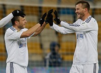 | Первый тур весенней части возобновившегося после зимней спячки чемпионата Украины принёс лишь один более-менее неожиданный результат - "Олимпик" отобрал два очка у "Зари", которая в текущем сезоне решительно нацелена на пьедестал почёта. "Динамо" же и "Шахтёр" одержали в своих матчах победы и продолжили идти нога в ногу в турнирной таблице, вместе с тем нарастив преимущество над ближайшим преследователем. Киевляне достаточно уверенно расправились в центральной игре тура с "Днепром", а "Шахтёр" не позволил сотворить сенсацию "Ворскле", которая старалась, но ничего поделать с "горняками" не сумела. В других матчах "Сталь" расписала мировую с "Александрией", "Черноморец" поделил очки с "Карпатами", а "Металлист" добился крупной победы над "Волынью". Подробнее обо всём этом – в традиционном обзоре на ФНК.