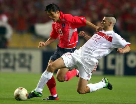 Сборная Турции победила Южную Корею со счетом 3:2 в матче за бронзовые медали мирового первенства. Турки, которые всего второй раз в своей истории вышли в финальную стадию чемпионата мира, впервые добились столь высокого результата на уровне национальной сборной. Героем матча стал капитан сборной Турции Хакан Шукур, который лишь в последнем матче турнира показал игру, достойную лидера национальной сборной. В предыдущих шести играх сборной Турции Хакан Шукур не забил ни одного гола, в матче за третье место открыл счет и сделал две голевые передачи. Более того, Хакан Шукур забил самый быстрый гол за всю 72-летнюю историю чемпионатов мира. Уже на 11-й секунде Хакан Шукур после ошибки опытнейшего защитника Хон Мюн Бо с 15 метров расстрелял ворота корейской сборной. Предыдущим рекордом был гол чешского футболиста Вацлава Машека, который открыл счет в матче против Мексики на 15-й секунде в 1962 году. Южная Корея, не смотря на поражения в двух последних решающих матчах, заслуживает только лестных слов. Корейцы стали первой азиатской сборной в истории чемпионатов мира, которая вышла в полуфинальную стадию. Первые минуты матча за третье место прошли очень интересно и результативно. Хакан Шукур на 1-й минуте открыл счет, но на 9-й минуте Ли Юл Ен великолепно пробил со штрафного и мяч в обвод стенки влетел в дальнюю девятку. Пока корейцы праздновали успех, турки провели быструю контратаку, которая вновь завершилась взятием ворот. Правда в этом эпизоде арбитр матча, наверное впервые на этом чемпионате, ошибся не в пользу сборной Корею. Турки в середине поля явно нарушили правила, но арбитр не заметил нарушения. В итоге последовала быстрая контратака и с передачи Хакана Шукура гол забил Ильхан Маншиз. После пропущенного гола Корея завладела большим преимуществом и прижала соперника к воротам. Турки большими силами оборонялись, но моменты у ворот Русту Рекбера возникали с завидным постоянством. В одном из эпизодов вратарь турецкой сборной каким-то чудом вытащил мяч из-под перекладины после удара Ан Чжун Хвана. Гол в ворота турецкой сборной, казалось, назревал. Но именно в этот момент турки забили очень важный третий гол. Хакан Шукур блестящей передачей вывел Ильхана один на один и форвард "Бешикташа" хладнокровно переиграл голкипера. В оставшееся время первого тайма турки грамотно контролировали мяч и вполне могли довести счет до разгрома, но Хакан Шукур не реализовал чистый выход один на один. В свою очередь арбитр не засчитал гол Ан Чжун Хвана, определив "вне игры". Во втором тайме корейцы владели подавляющим территориальным преимуществом, но грамотная оборона турок не совершала ошибок. Лишь в добавленное арбитром время дальний удар отчаяния Сон Чон Гука достиг своей цели, но времени на еще один гол у корейцев не осталось.