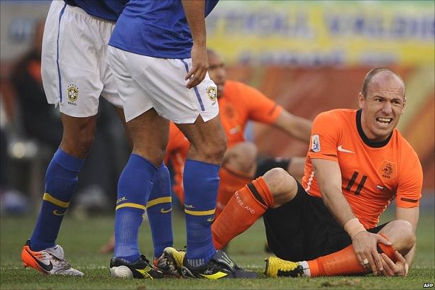 Роббена лупят по ногам.