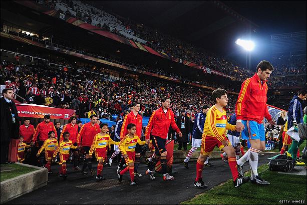 Испания выходит на поле. |