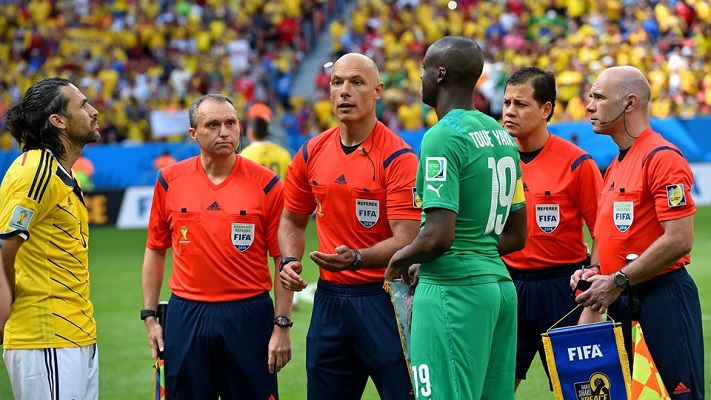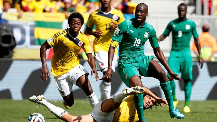 Яя Туре в окружении игроков сборной Колумбии (фото - fifa.com)
