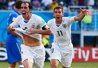 Крайне напряженным получился матч между сборными Италии и Уругвая, чтобы было довольно легко спрогнозировать. На кону стоял выход из группы, и команды в первую очередь задумывались о результате, а не о том, как порадовать болельщиков яркой игрой. Поклонники атакующего футбола вряд ли остались довольны увиденным. Тем же, кому нравится лучшая игра с мячом с точки зрения различных тактических тонкостей, наверняка было интересно. Большую часть матча на поле шла самая настоящая шахматная партия Пранделли и Табареса. Можно сказать, что инициативой владел тренер «скуадры адзурры», так как итальянцев нулевая ничья устраивала, однако на исходе часа игрового времени игра пошла под диктовку уругвайцев ввиду того, что Клаудио Маркизио схлопотал прямую красную карточку и оставил свою команду в меньшинстве. Позже составы команд, в принципе, могли уравняться, если бы главный арбитр встречи как-то отреагировал на укус Суареса. На сей раз, жертвой Луиса стал Джорджио Кьеллини. А уже под занавес встречи южноамериканцы все-таки реализовали большинство и вырвали победу. Розыгрыш углового завершился точным ударом Диего Година! Уругвай занял второе место в группе D и через несколько часов узнает своего соперника по 1/8 финала. С большой долей вероятности «селесте» предстоит встретиться с Колумбией. Ну, а «скуадра адзурра» после победы на первенстве планеты 2006 года уже на втором мундиале подряд не может преодолеть стадию группового этапа.