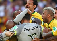 Сумасшедший по накалу матч выдали сборные Бразилии и Чили! Команды показали сверхэмоциональную, яркую и крайне драматичную игру, в которой чаша весов могла склониться как в одну, так и в другую сторону, но удачливее все-таки оказались хозяева турнира. Говорят, что везет сильнейшим. Возможно, «селесао» были ближе к победе, однако чилийцы мало в чем своему сопернику уступили. Голы в этом матче забивались исключительно в первом тайме. Сначала подопечных Луиса Фелипе Сколари вперед вывел Давид Луис, но Алексису Санчесу достаточно быстро удалось восстановить равновесие. В дальнейшем шла игра с обоюдными шансами на успех, однако выявить победителя команды смогли только в серии одиннадцатиметровых. Хотя, под занавес второго дополнительного тайма подопечные Хорхе Сампаоли могли вырвать победу, но удар Пинильи пришелся в перекладину. Ну, а в серии пенальти удача улыбнулась хозяевам. Победу «пентакампеонам» принес Неймар, а решающий промах у чилийцев совершил Гонсало Хара. «Ла роха» не смогла прервать бразильское проклятье. Чилийцы четыре раза в своей истории выходили из группы на чемпионатах мира, и во всех случаях дорогу к кубку им преграждала именно Бразилия. Теперь хозяева мундиаля будут ждать завершения противостояния Колумбия – Уругвай, с победителем которого «селесао» и сыграют в четвертьфинале.