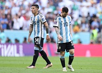 С начала второго тайма Аргентина отправилась вперед, и Ди Мария оперативно попал в привычный офсайд. А вот ответ Саудовской Аравии оказался неожиданным. По центру прошел простой пас на Аль-Шехри, который просто на рывке умчался от Ромеро и из-под него пробил в нижний дальний угол. 1:1. Первый удар в сторону ворот от саудовцев оказался результативным. На эмоциях они продолжили высоко прессинговать и даже едва не поймали аргентинскую оборону на еще одной ошибке. Впрочем, после небольшой паузы они сделали-таки это, окончательно осмелев. Сначала удар с левого угла штрафной принял на себя кто-то из защитников сборной Аргентины. Потом на отскоке первым оказался Аль-Давсари, который ловко выскочил из-под опеки двух аргентинцев, увернулся от Де Пауля и зарядил в дальний угол. Вратарь коснулся мяча, но вытащить не смог. 1:2. Запахло сенсацией. Аргентинцы зашевелились гораздо быстрее, стали живее двигать мяч и бросились в атаку. Месси едва не убежал на ворота, но в отчаянном подкате его остановил Аль-Тамбакти. Скалони не выдержал этого и сделал тройную замену. Убрал Ромеро, Гомеса и Паредеса, выпустил Хулиана Альвареса, Энцо Фернандеса и Лисандро Мартинеса. С добавлением живости увеличилась и суета, суматоха. Саудовцы пытались соответствовать ритму, задаваемому соперником. И делали это уже с трудом. Но все же кое-как сдерживали аргентинцев и мешали им обострять. После углового мяч заметался-таки по штрафной Саудовской Аравии, прострел из пределов вратарской завершился ударом и рикошетом от Тальяфико, но Аль-Уваис чудом среагировал. Все чаще мяч посещал его штрафную, однако самоотверженно саудовцы бросались под прострелы, передачи, удары. Скалони бросил в бой Акунью, который сменил Тальяфико. Необходимо было последнее усилие, решающий натиск. Саудовцы отбивались изо всех сил, отчаянно пресекая любые прорывы. Два прострела справа подряд прошли во вратарскую. Но первый никто не замкнул, а второй перехватил Аль-Уваис. Вратарь же показал, что умеет и на выходах четко работать. Он увидел, что партнерам не удалось поймать в офсайд Мартинеса, поэтому бросился навстречу, вышел из штрафной и в подкате опередил Лаутаро. Ренар тоже освежил состав, выпустив вместо Аль-Шехри Аль-Ганнама. Аргентина продолжила гнуть свою линию. Рывок Месси помог ему заработать перспективный штрафной. После долгой подготовки сам Лионель пробил, но слишком высоко. Между тем, саудовцы стали усердно собирать желтые карточки. Где-то за споры с судьей, где-то за затягивание времени, а где-то и за грубые фолы, поскольку скорость игры возросла. Так за 15 минут четыре предупреждения было выдано им. Очередной долгий розыгрыш аргентинцев завершился подачей, которая дошла до Месси, но его удар головой стал легкой скидкой в руки Аль-Уваису. Все чаще и чаще стали саудовцы растягивать паузы, создавать их. На газоне оказался Аль-Брикан. Аргентинцы очень не хотели останавливать игру, но пришлось. Ферас успел вернуться на поле и побороться отчаянно. Но все же его заменили на Асири. И еще вместо Аль-Абеда, который получил предупреждение за медленный уход с поля, появился Аль-Амри. Этим сумбуром и паузами некоторое время убить удалось. Но аргентинцы опять двинулись в атаку и заработали штрафной. Розыгрыш до удара не довели, однако заработали угловой. После его розыгрыша получилась подача, за кото